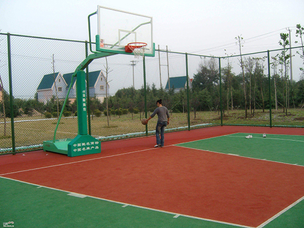 籃球場圍網(wǎng)表面處理:圍網(wǎng)采用PE/PVC包塑絲,立柱、邊框采用噴塑、浸塑處理